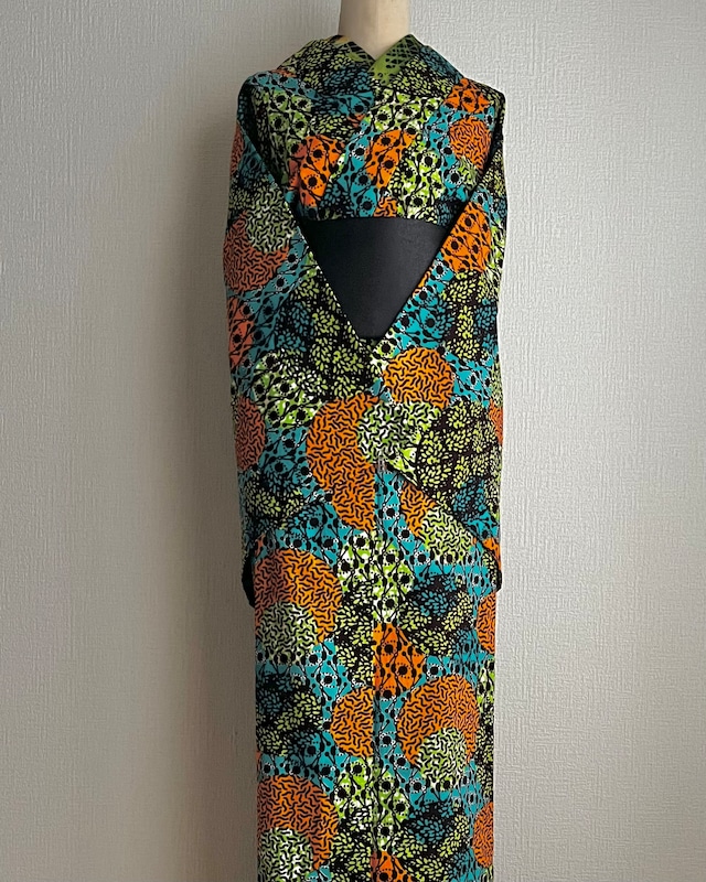 浴衣や夏の着物としてご利用頂けるシーズン期間中送料無料! この機会をどうぞお見逃しなく!! 西アフリカ地域において広く流通しているアフリカプリント生地で仕立てたアクティブラインのアフリカ着物 活発な動きを伴う祭事や踊りのイベントなど 躍動感あるシーンで着用頂けるようミシン縫製でしっかりすっきりと仕上げました 縫製強度が増すことにより 複数回にわたるお洗濯への耐久性も高まる 美しく頼もしいアフリカ着物となっています 穏やかな春と秋の時期には着物として 夏場は浴衣スタイルで 寒さを感じる時期は暖かなインナーとともに1年を通じて着用頂けます 色柄を活かしたシンプルな着こなしから アレンジの効いた和洋折衷スタイルまで バラエティに富んだスタイリングをお楽しみ下さい 自己を表現する一手段としてのAFRICAN CLOSETの着物を ぜひご自身のクローゼットにお迎え下さい ※袖口/ふり/すそ/褄下(つました)もミシン処理が施されています これらの箇所はオプションで手縫い仕上げに変更することも可能です ご購入に際してご不明な点がございましたら どうぞお気軽にお問い合わせ下さい ◆仕様 ・綿100% (入荷元:ガーナ) ・ミシン仕立て ・単衣 /バチ衿 ◆サイズ 身丈 165㎝ (4尺3寸5分) *背から 裄 68.5㎝ (1尺8寸2分) 身幅 前24.5 cm (6寸5分) 後30.0 cm (8寸) 袖丈 49.0cm (1尺3寸) ◆お手入れについて ・色落ちの可能性を考慮し、洗濯時には他の衣類と分けてお洗い下さい ・たたんだ状態の着物を洗濯ネットに入れ、おしゃれ着用洗剤で押し洗い下さい ・日陰干し下さい ・半乾きの状態でアイロンをかけますとシワが取れやすく、きれいに仕上がります ◆返品・返金について ご購入確定後の返品・返金を致しかねますことをあらかじめご了承頂きますようお願い申し上げます
