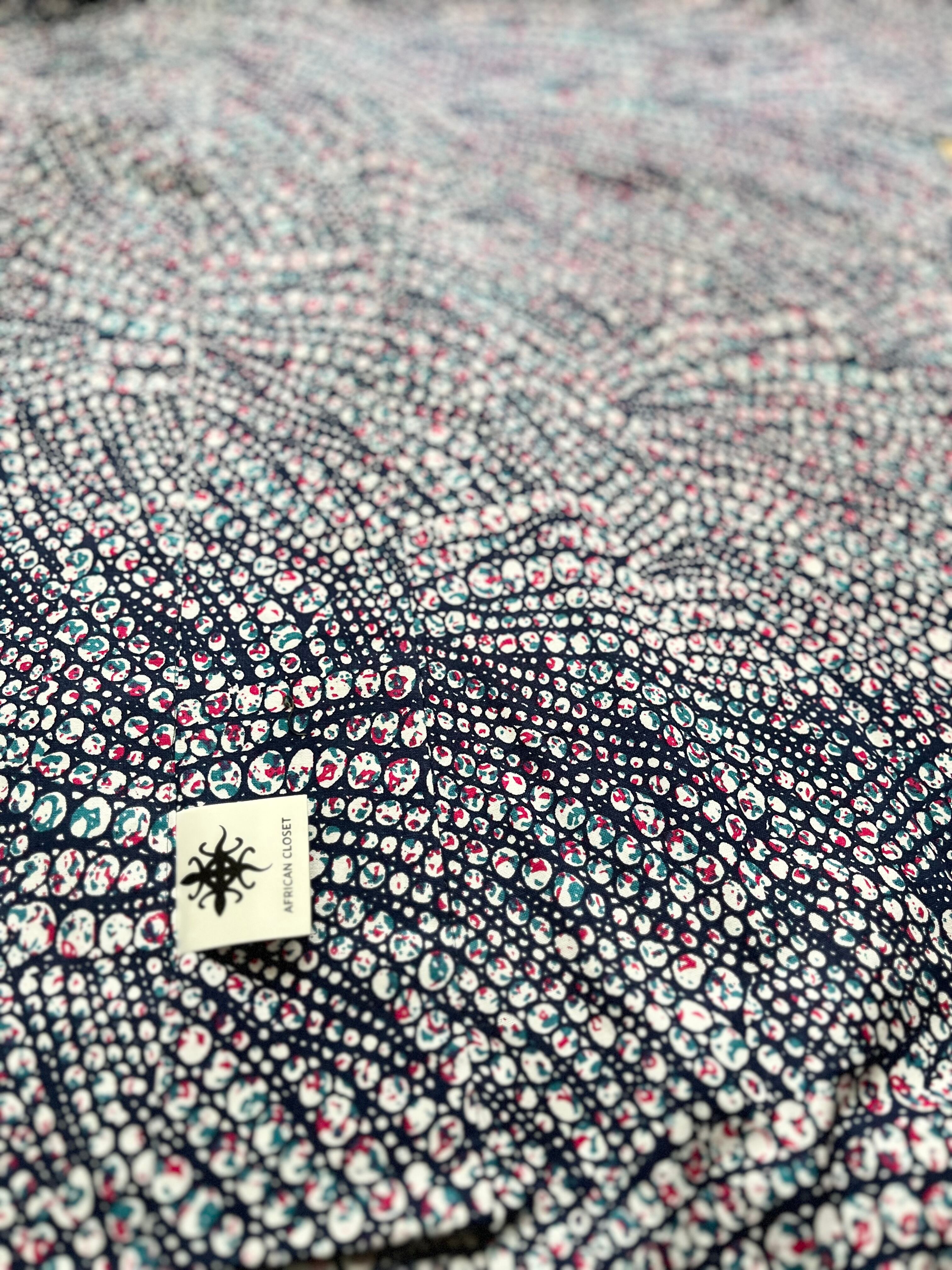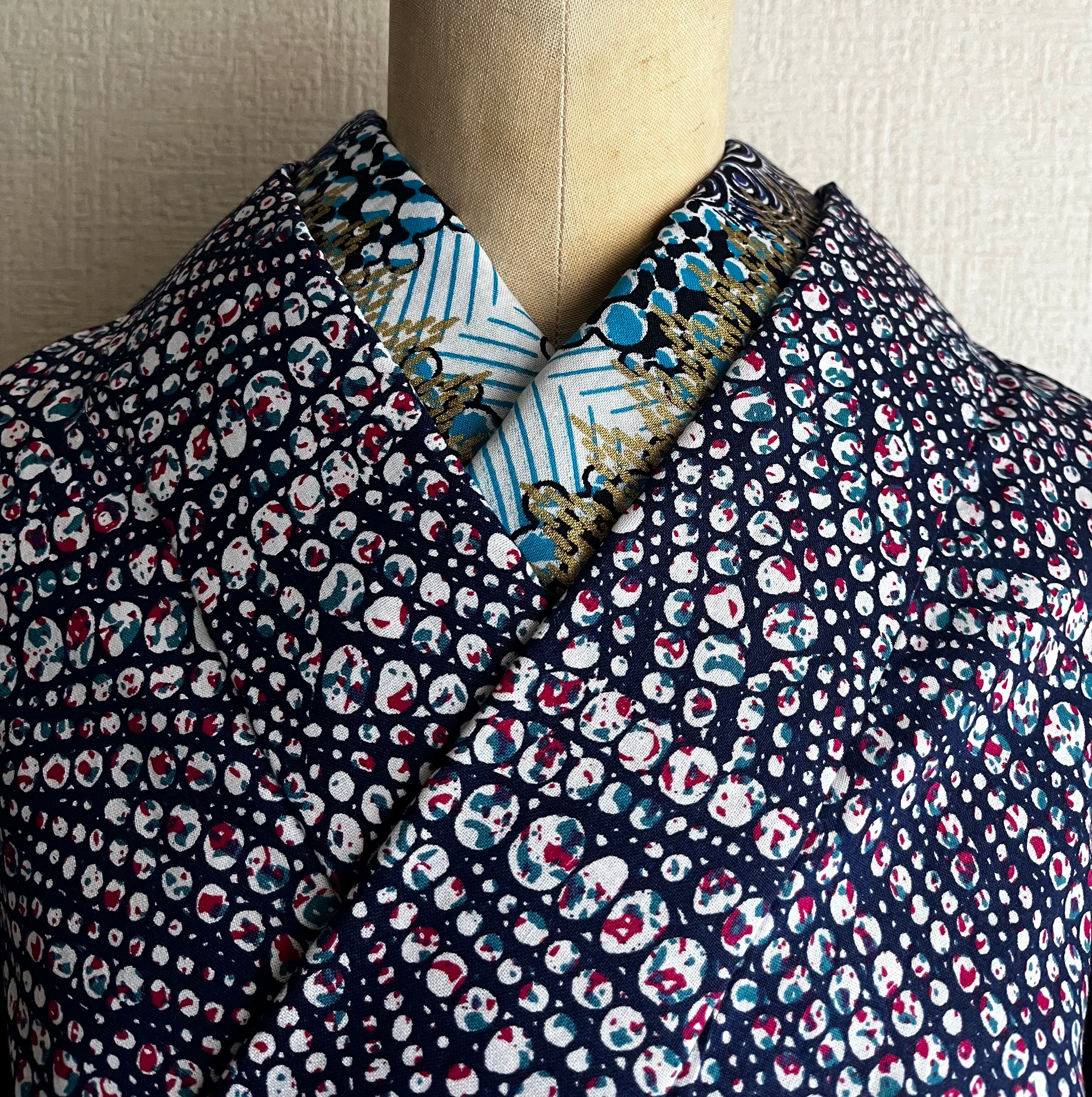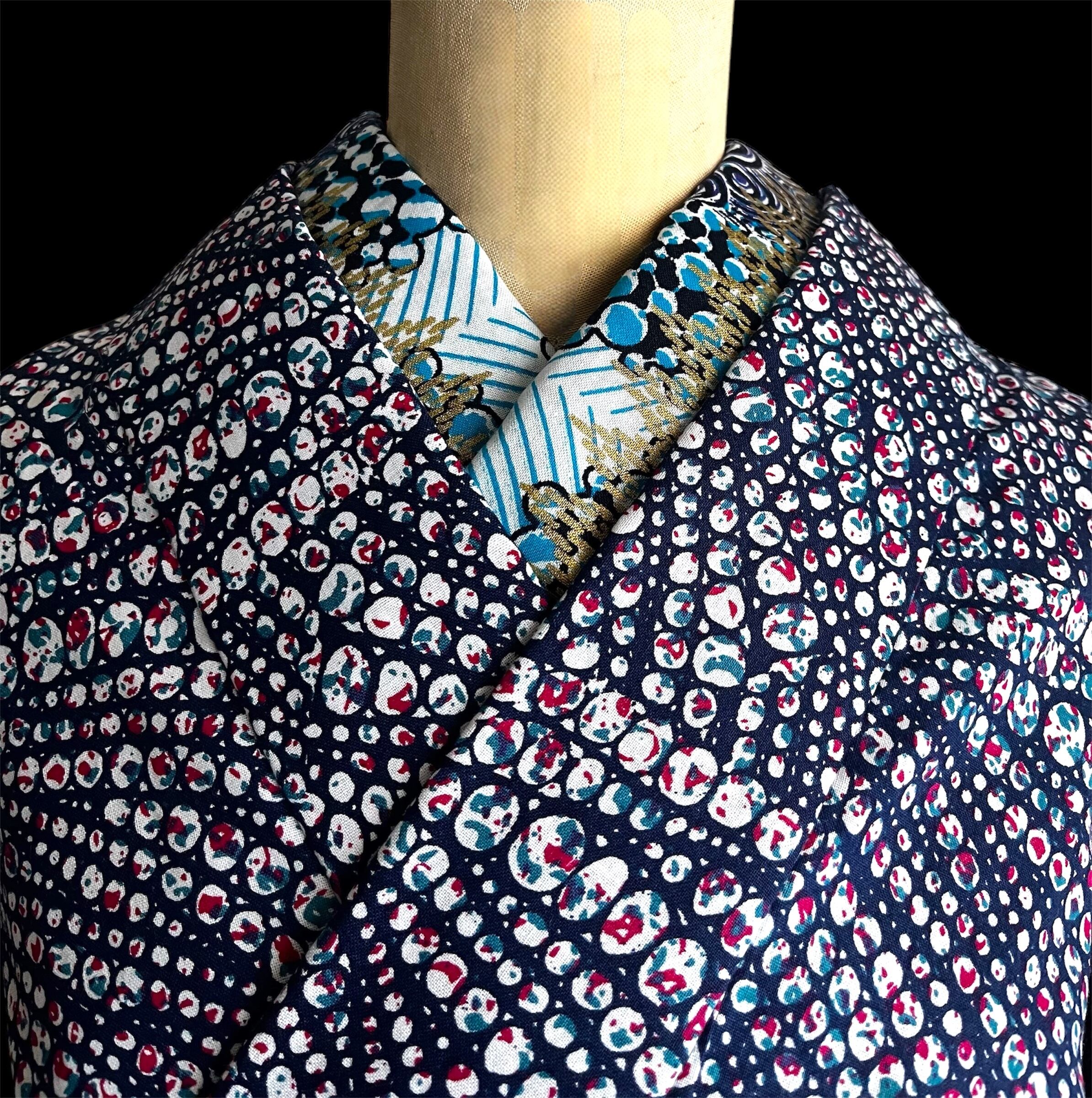 西アフリカ・ガーナのテキスタイルブランドWOODINの生地で仕立てたアクティブラインのアフリカ着物