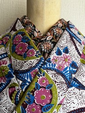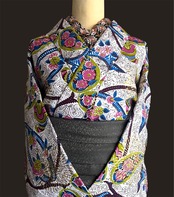 西アフリカ・ガーナのテキスタイルブランドWOODINの生地で仕立てたアクティブラインのアフリカ着物