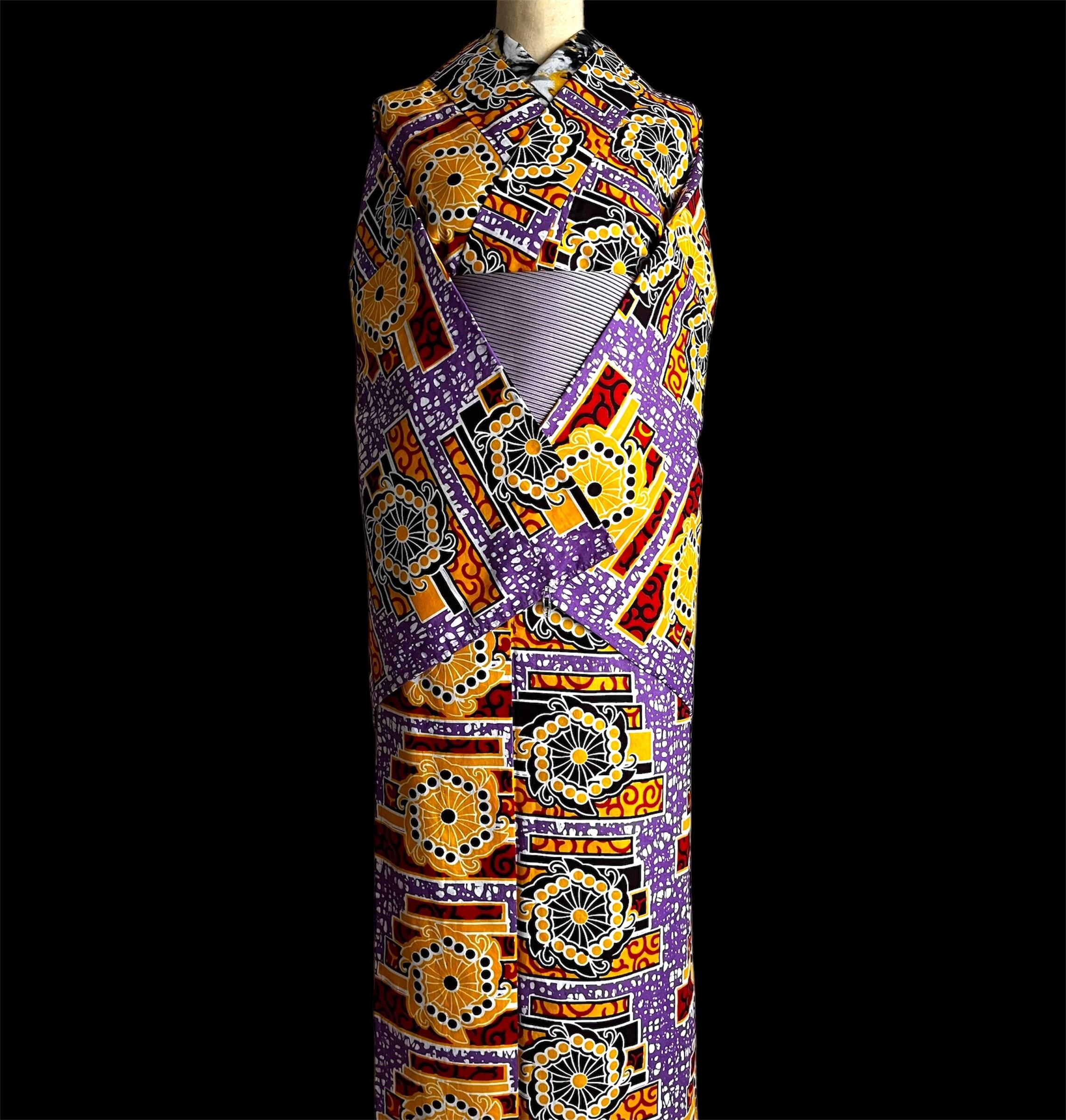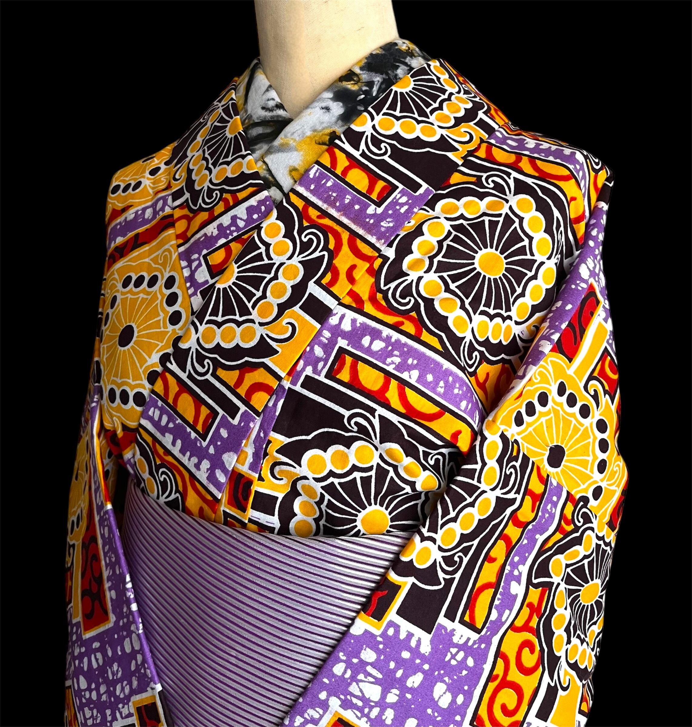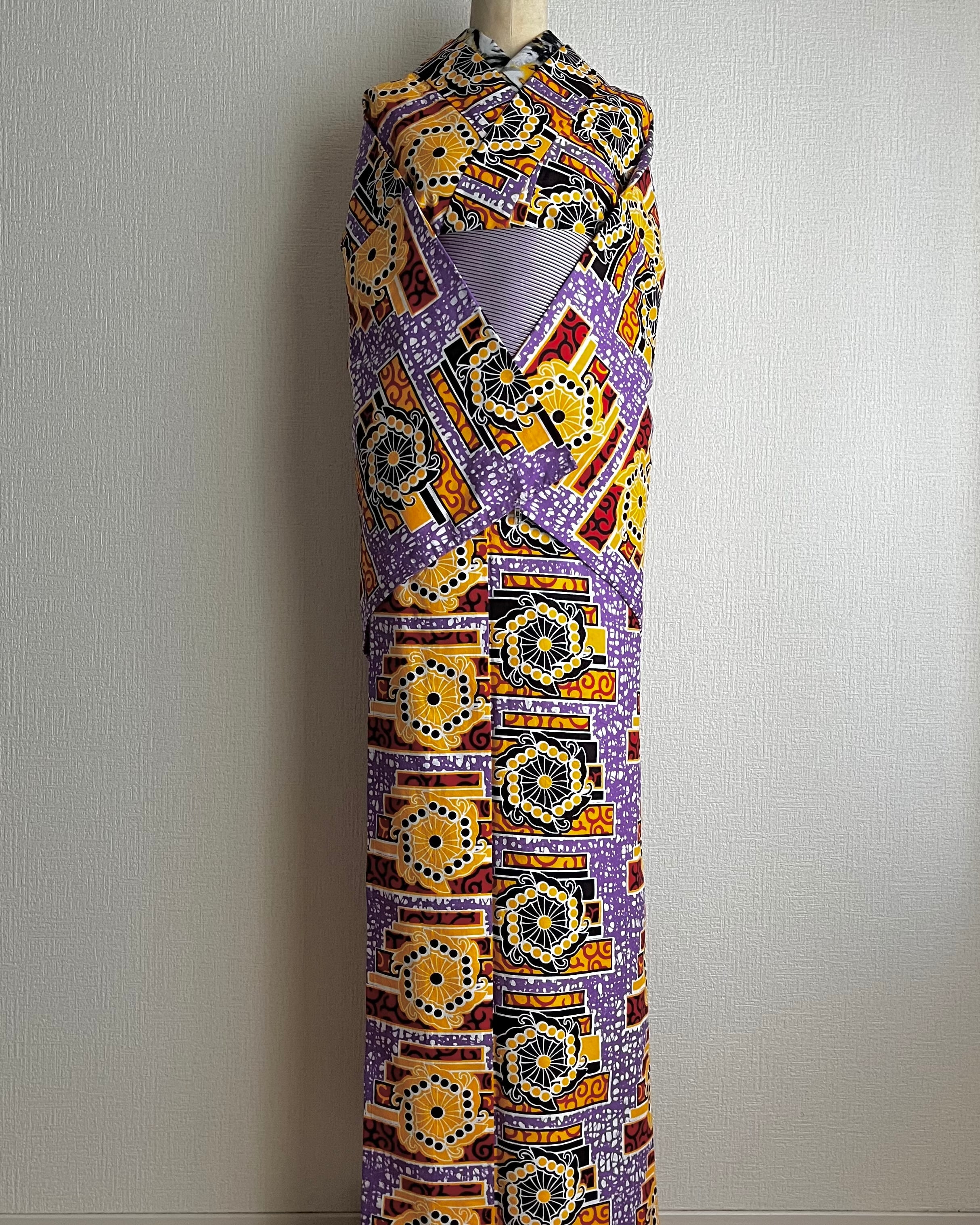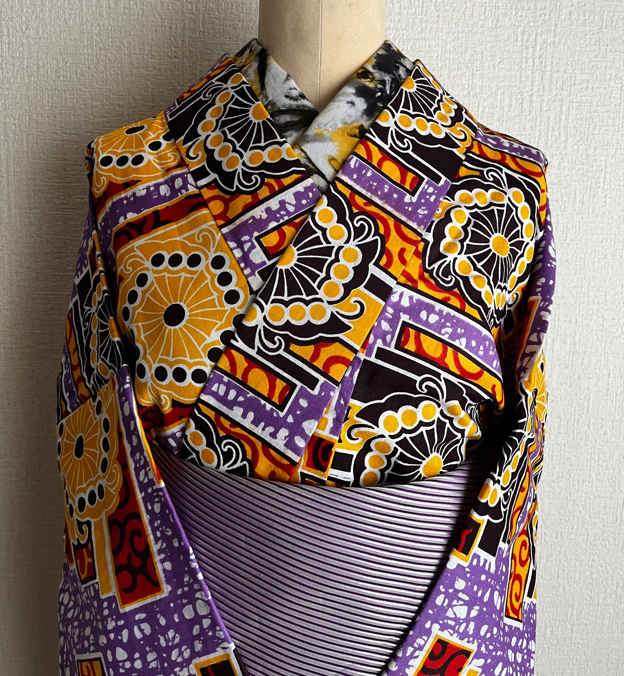 西アフリカ・ガーナのテキスタイルブランドGTP (Ghana Textiles Printing Company Limited)の生地で仕立てたアクティブラインのアフリカ着物