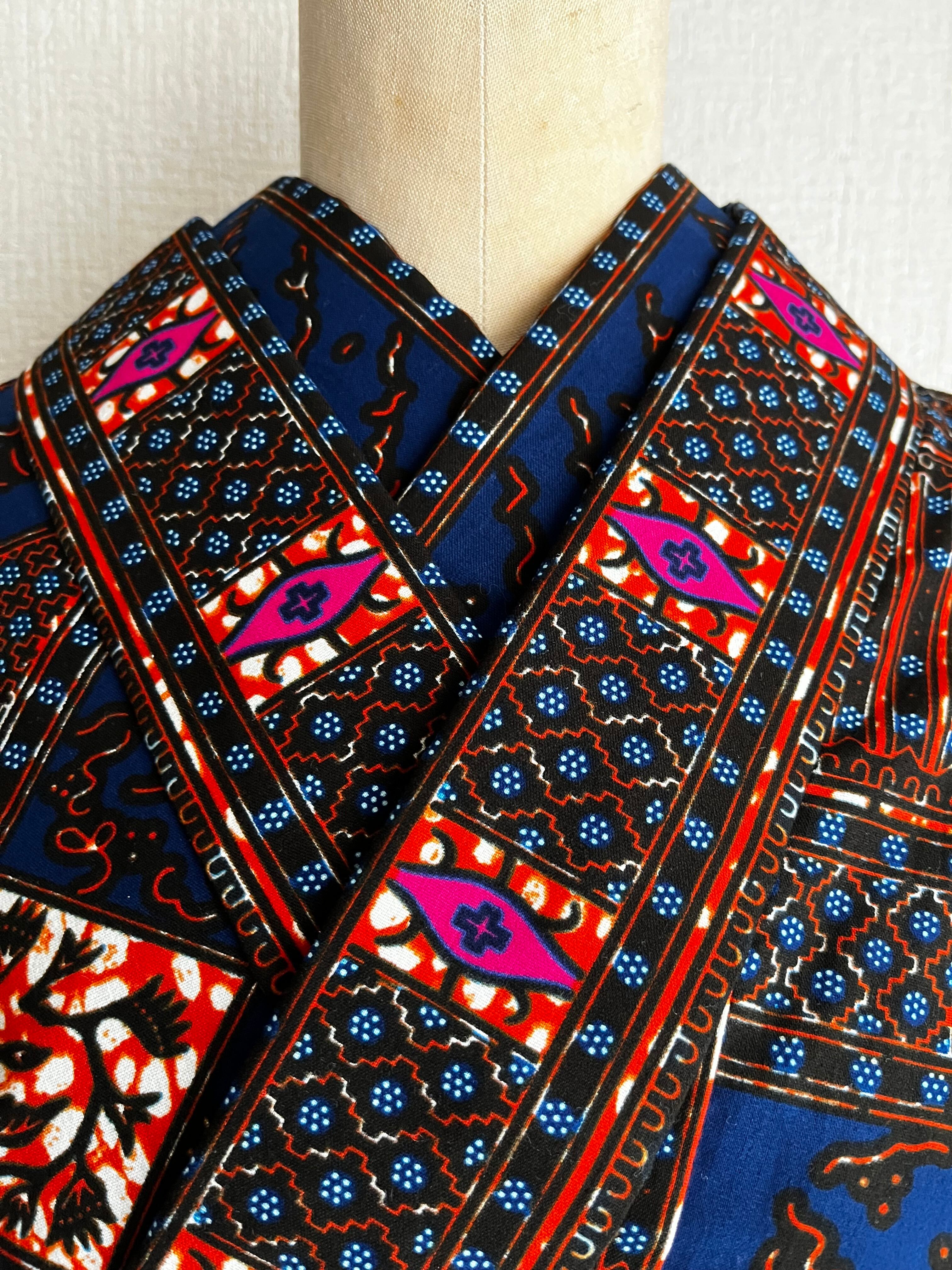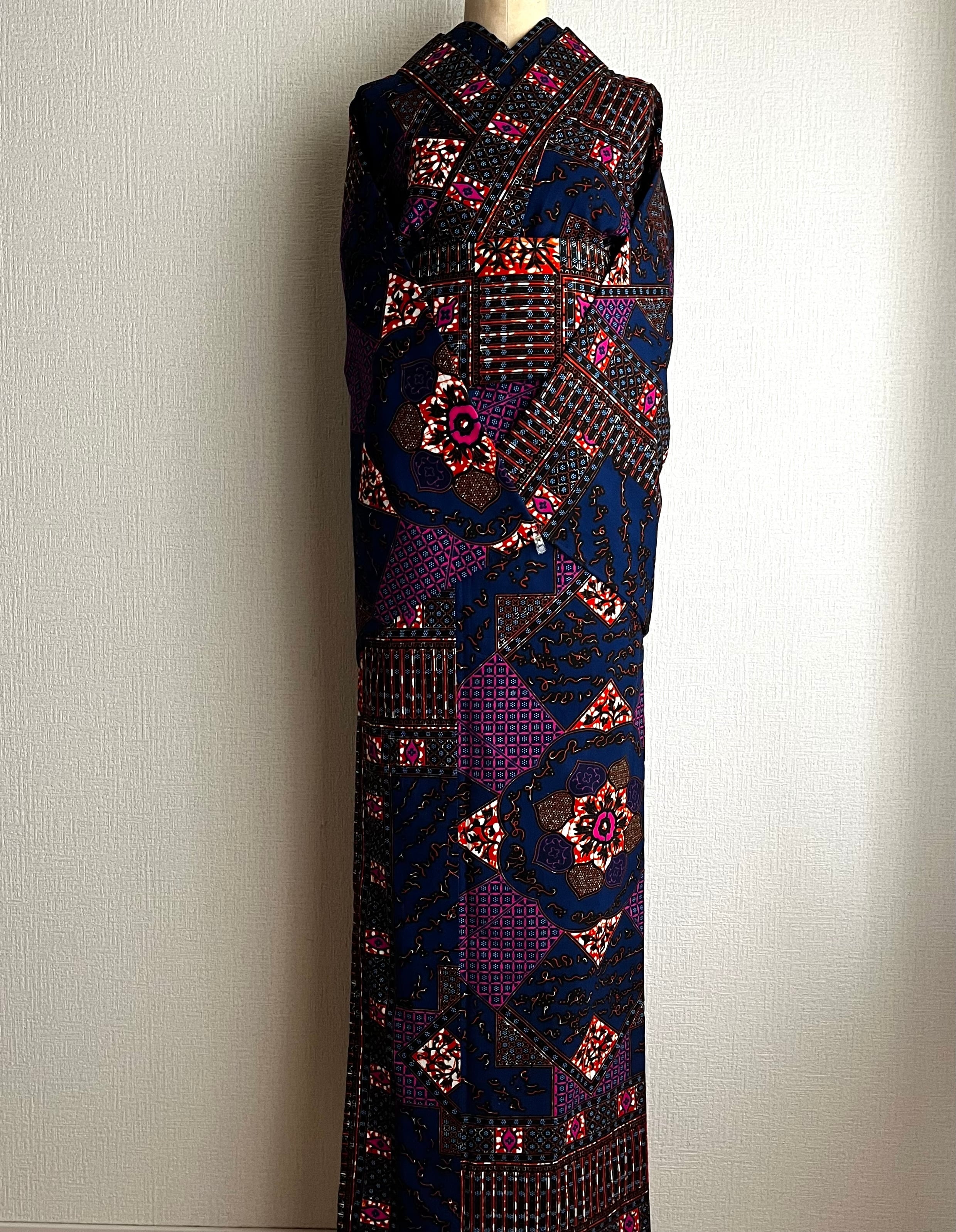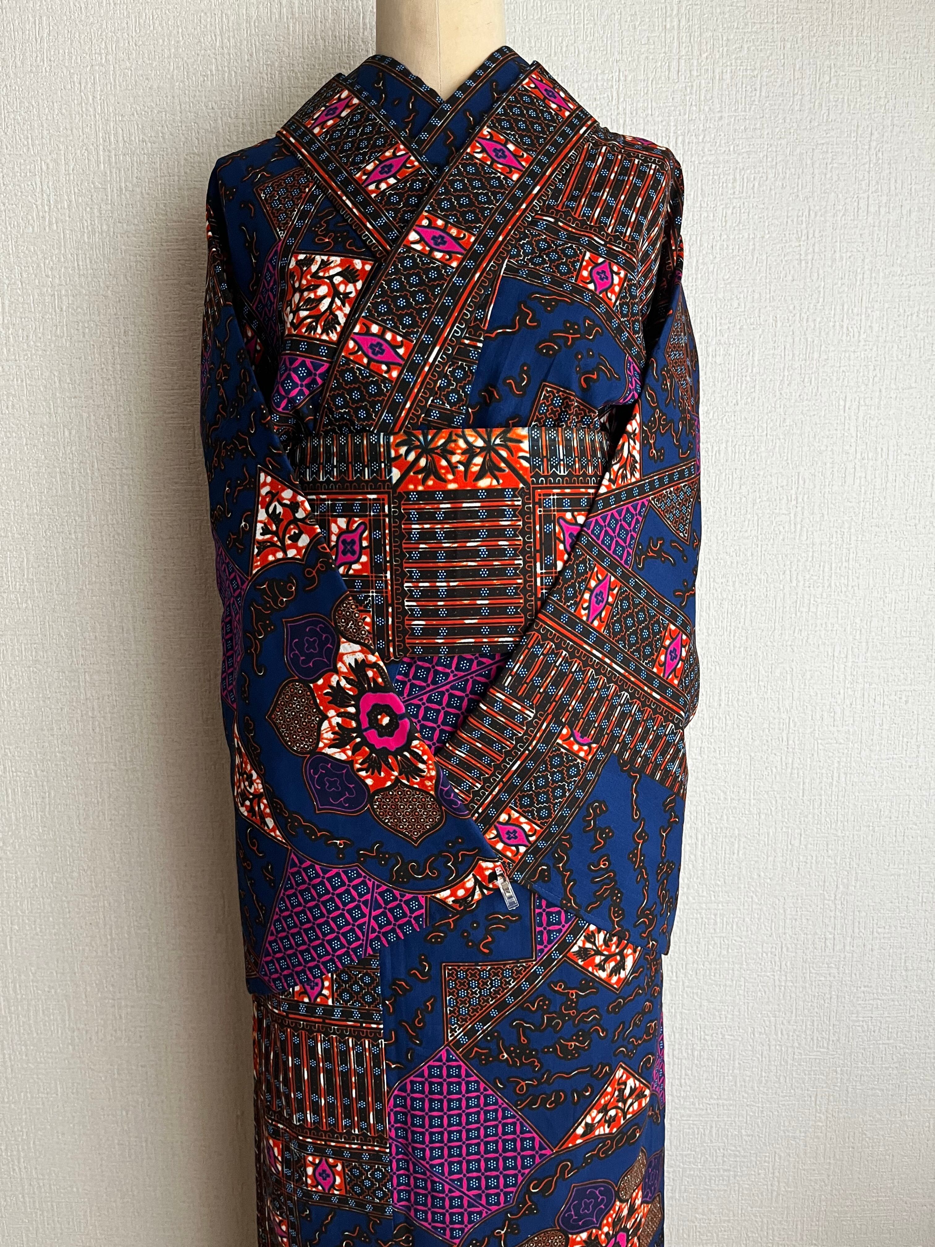 西アフリカ地域において広く流通しているアフリカプリント生地で仕立てたアクティブラインのアフリカ着物