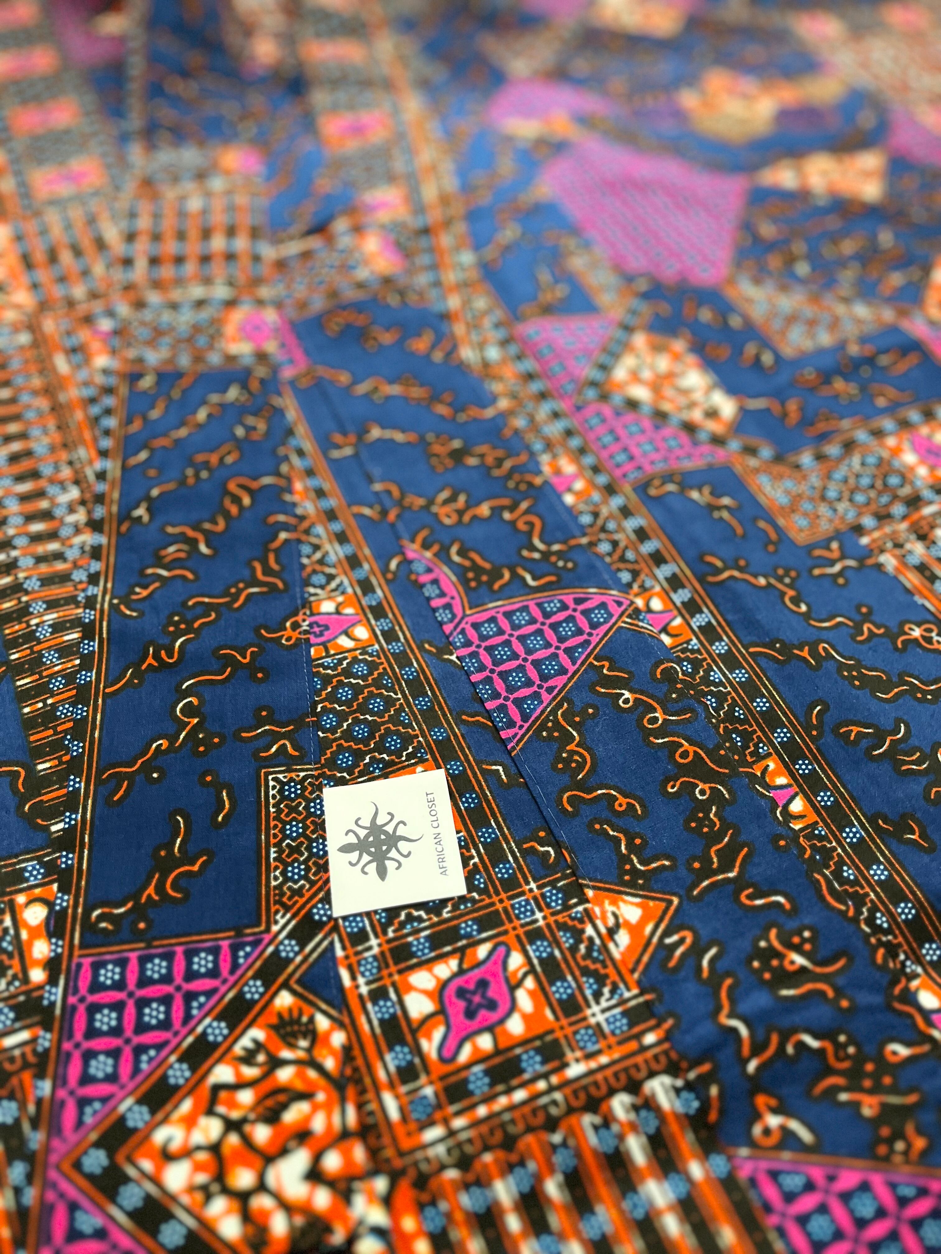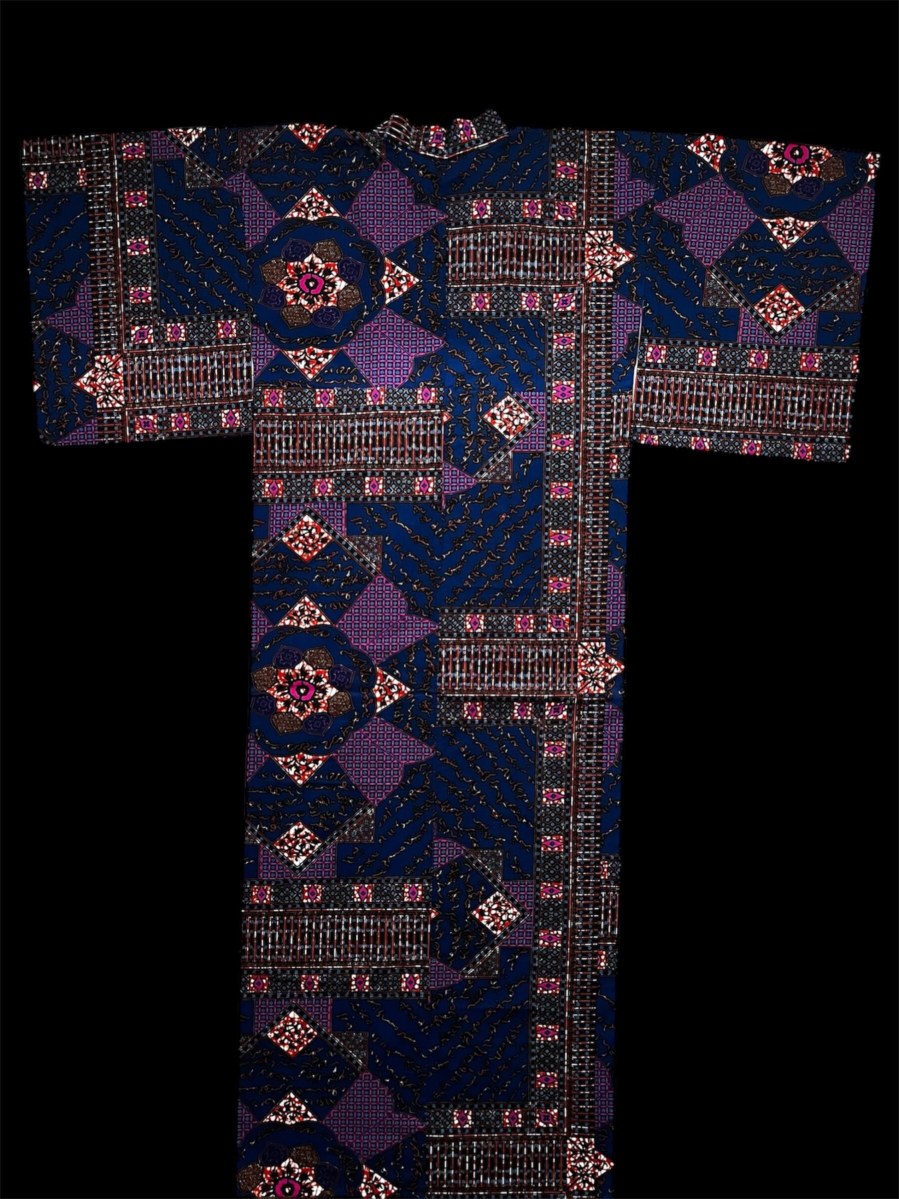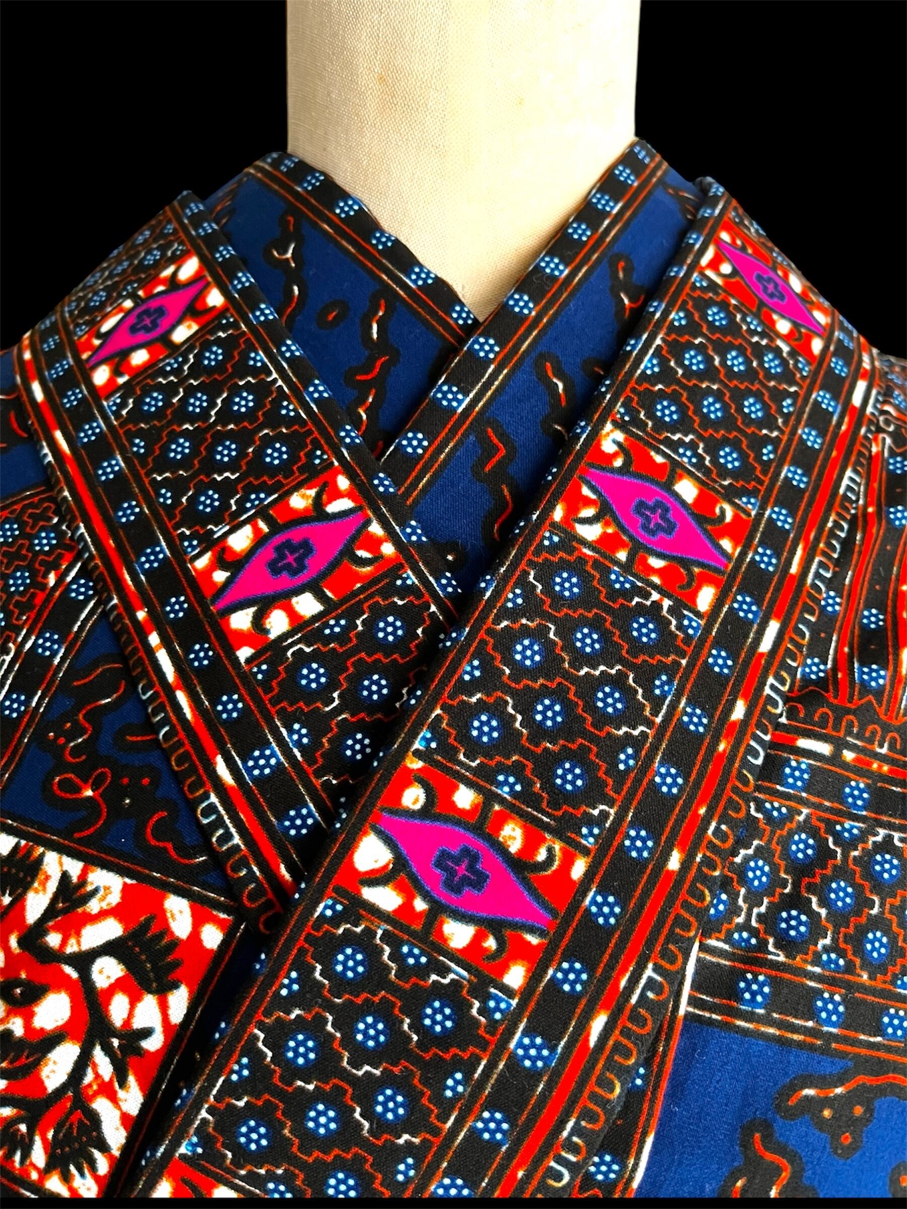 西アフリカ地域において広く流通しているアフリカプリント生地で仕立てたアクティブラインのアフリカ着物
