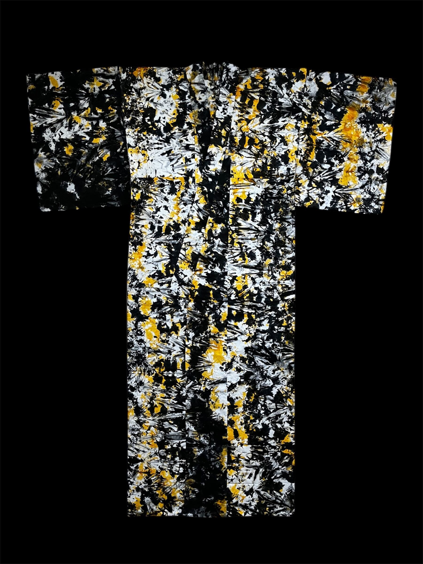 ガーナタイダイ染め 浴衣 着物 Mサイズ ブラック African Tie-Dye KIMONO a030