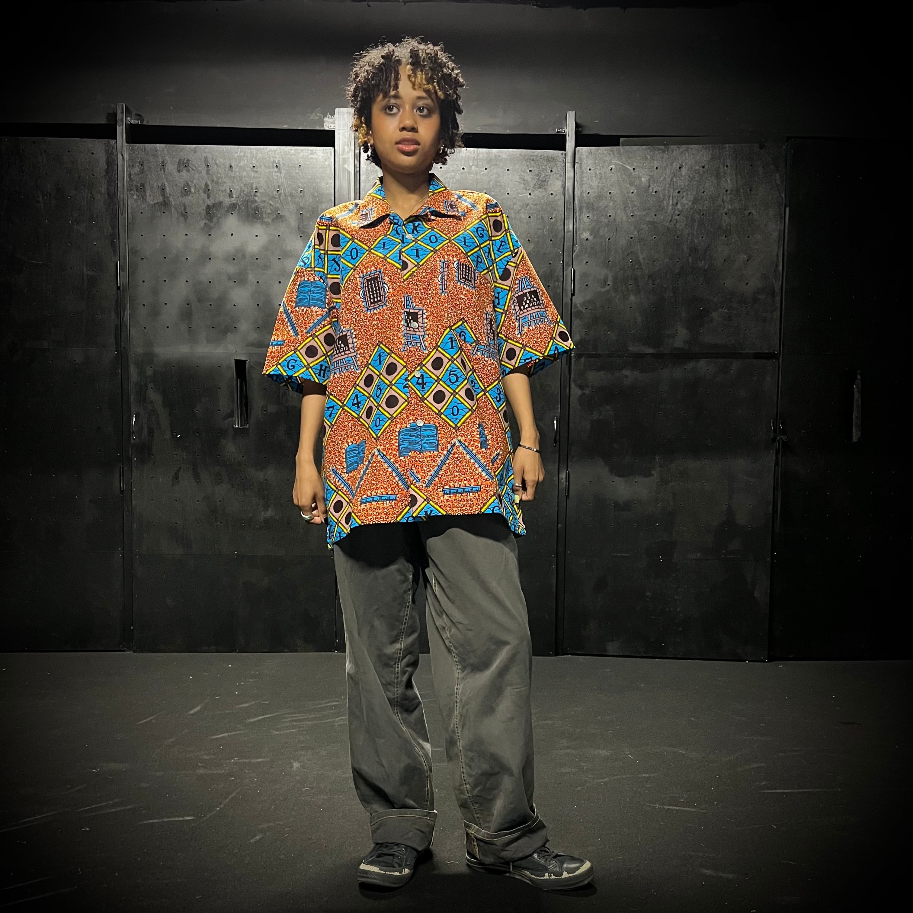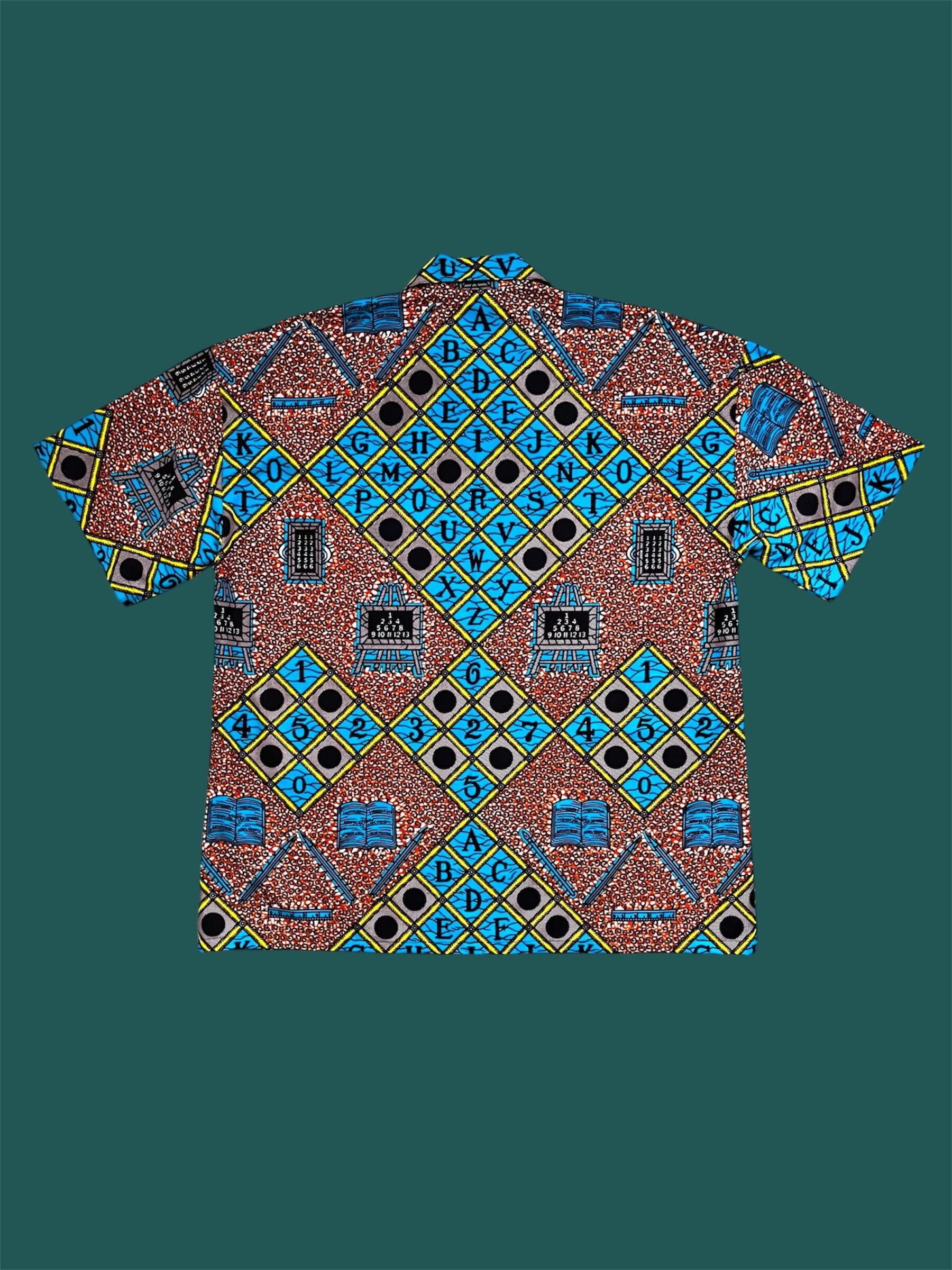 「勉強が大切」というメッセージが込められたデザインのアフリカプリント生地を使用した