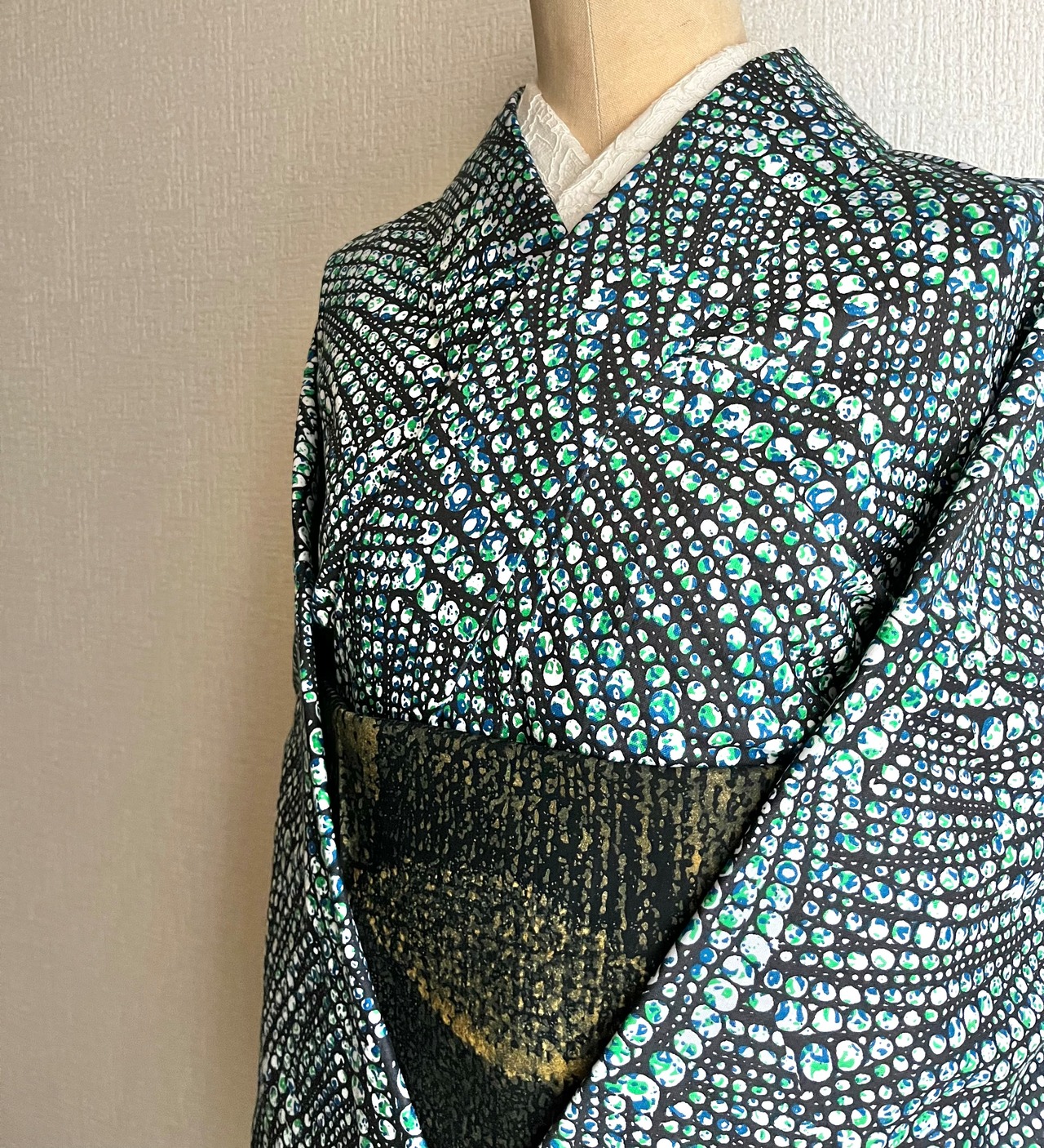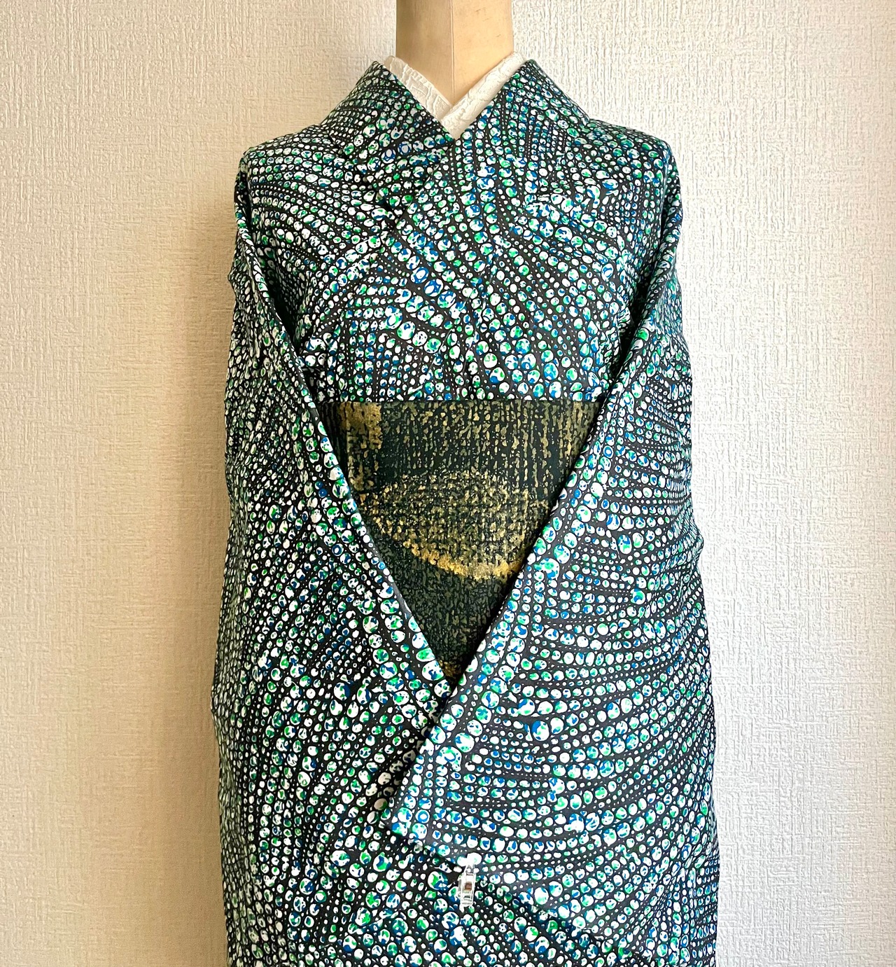西アフリカ・ガーナのテキスタイルブランドWOODIN (ウッディン)の生地でお仕立てしたプレタ着物