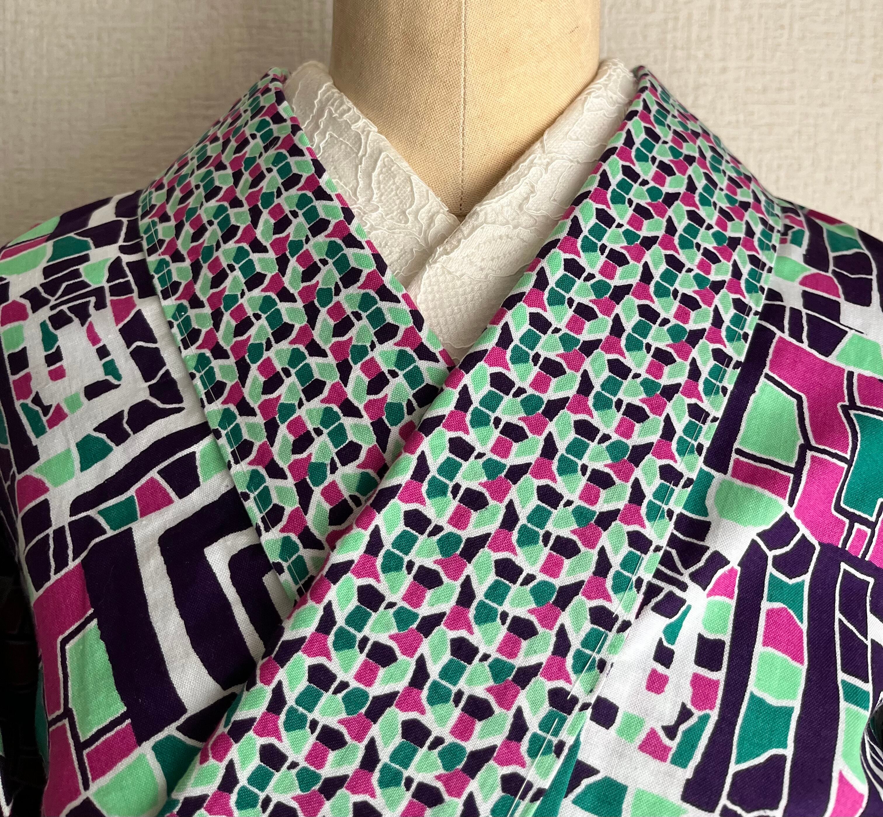 西アフリカ・ガーナのテキスタイルブランドWOODIN (ウッディン)の生地でお仕立てしたプレタ着物