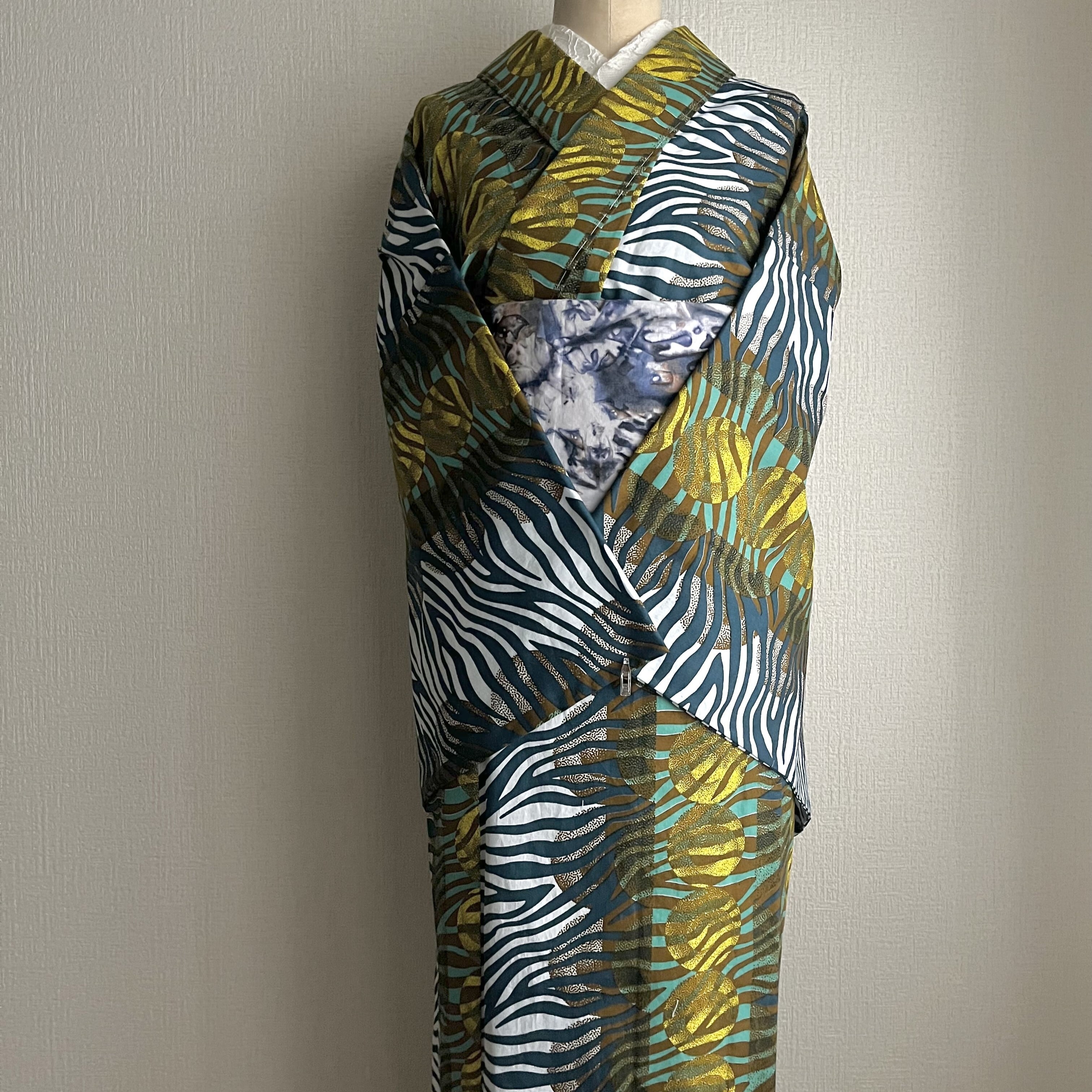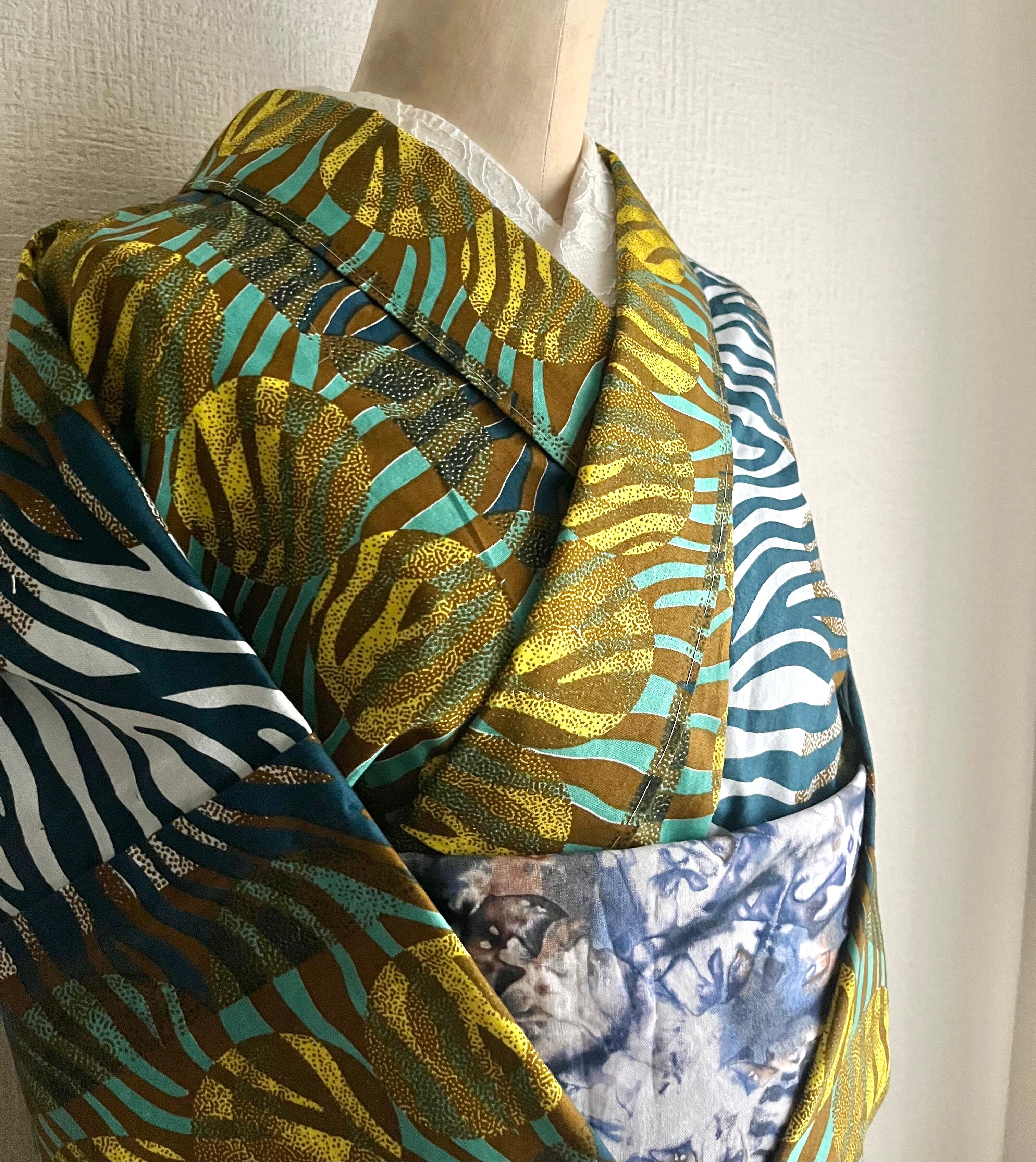 西アフリカ・ガーナのテキスタイルブランドWOODIN (ウッディン)の生地でお仕立てしたプレタ着物
