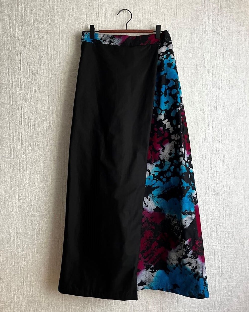 西アフリカ・ガーナのタイダイ染めと綿無地を組み合わせた個性ある一着です