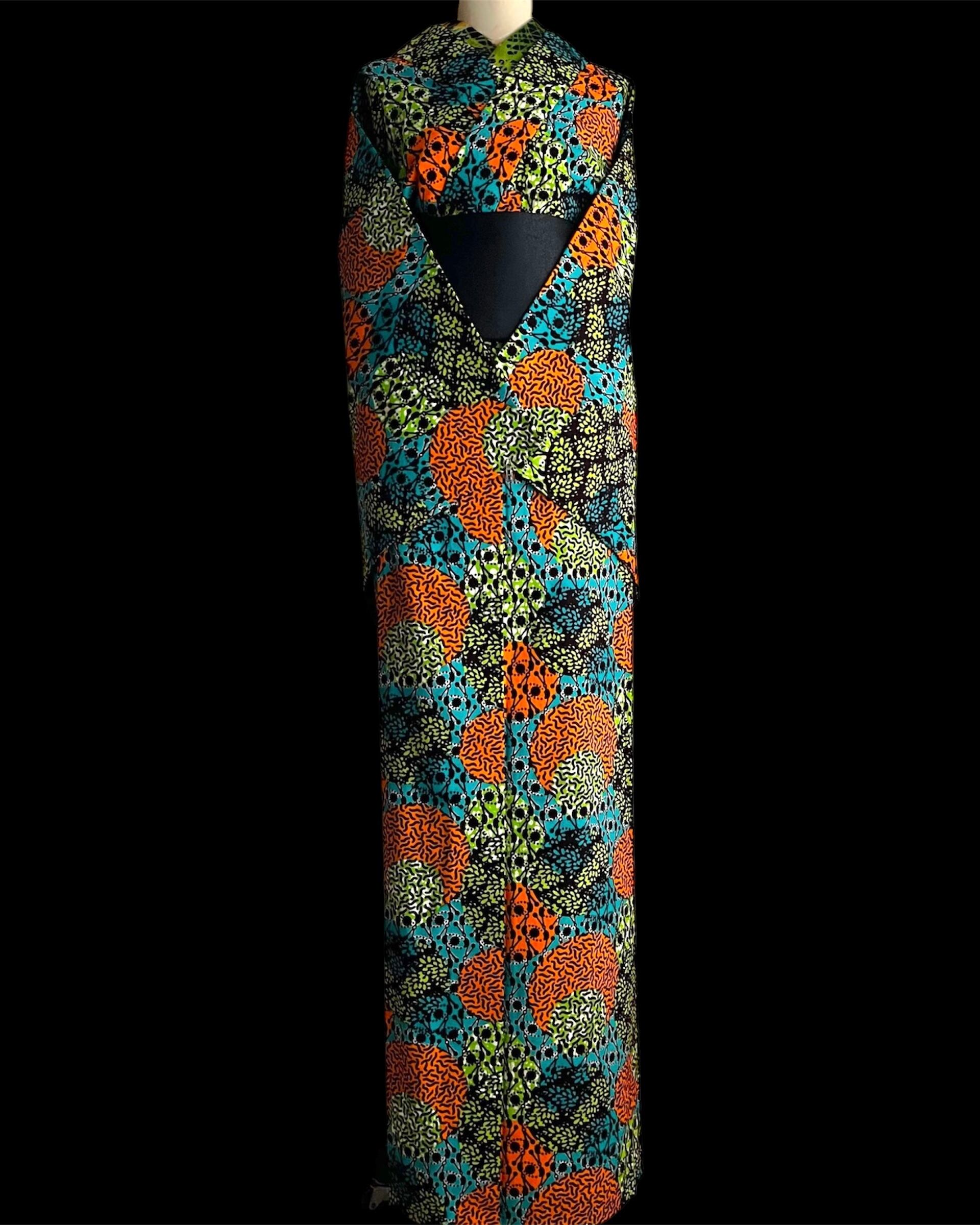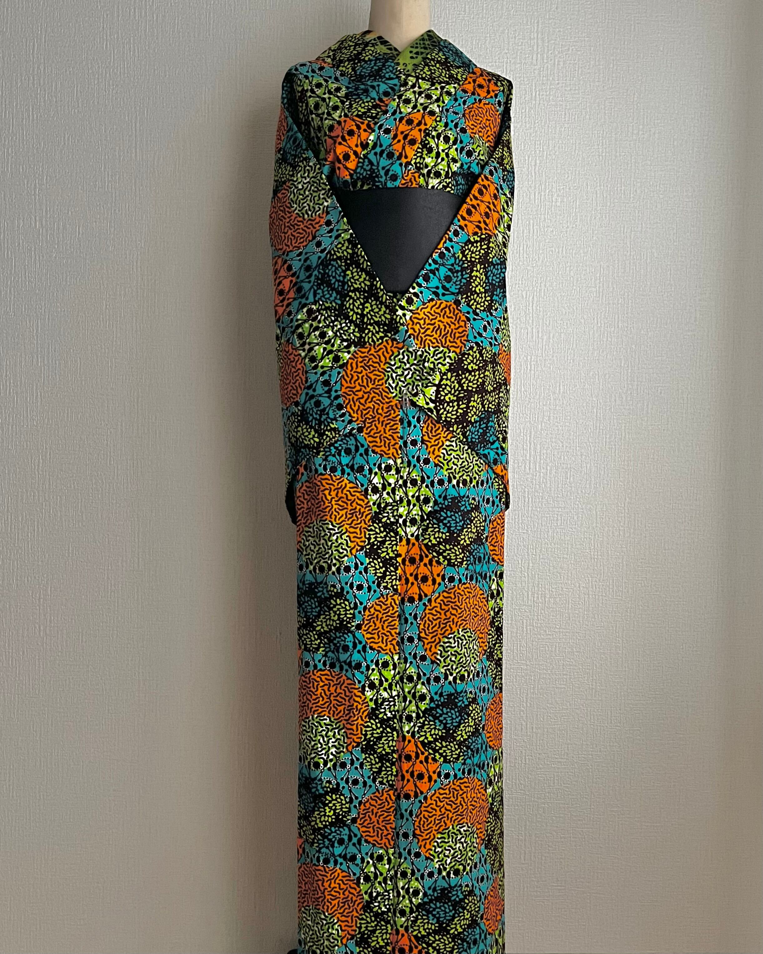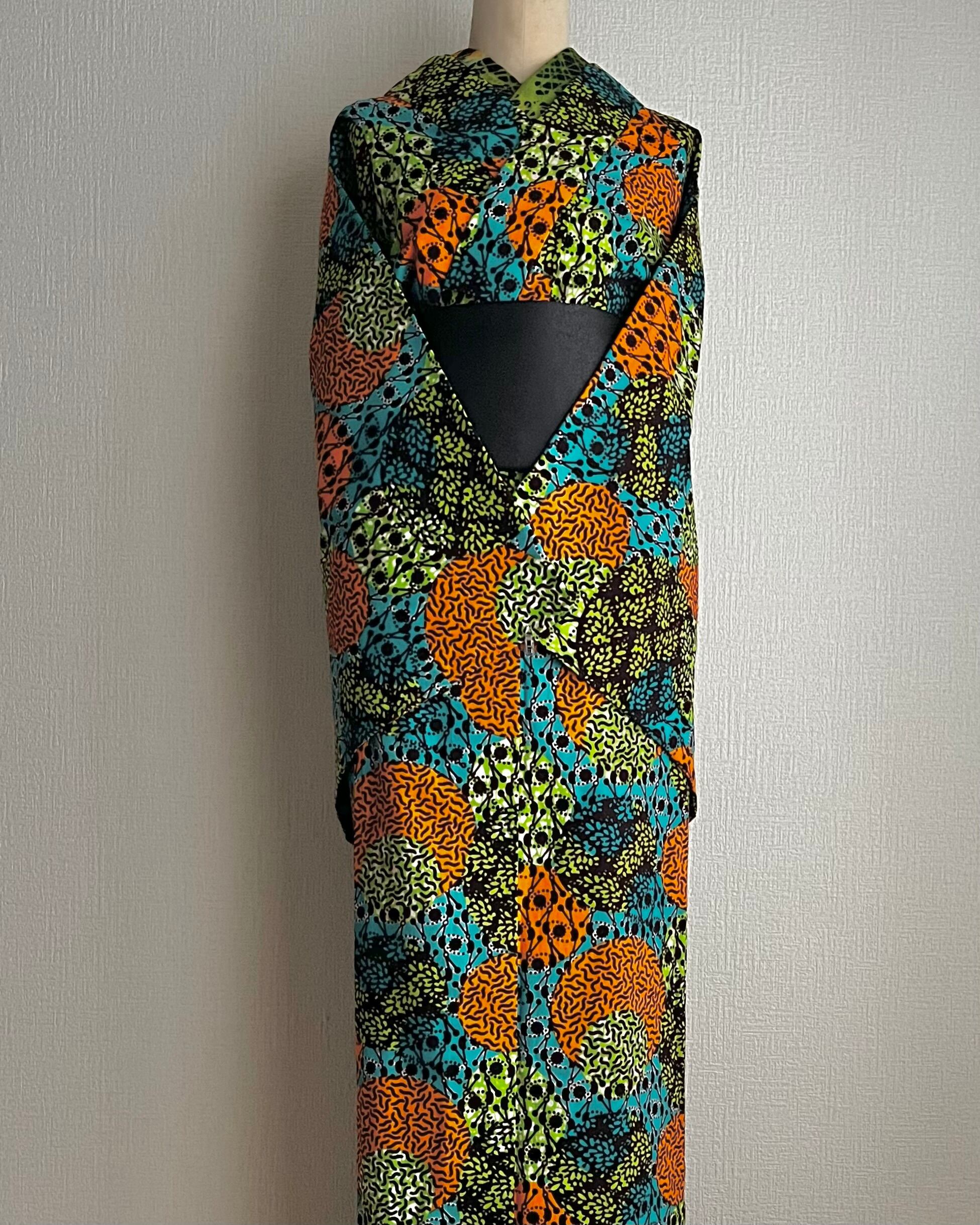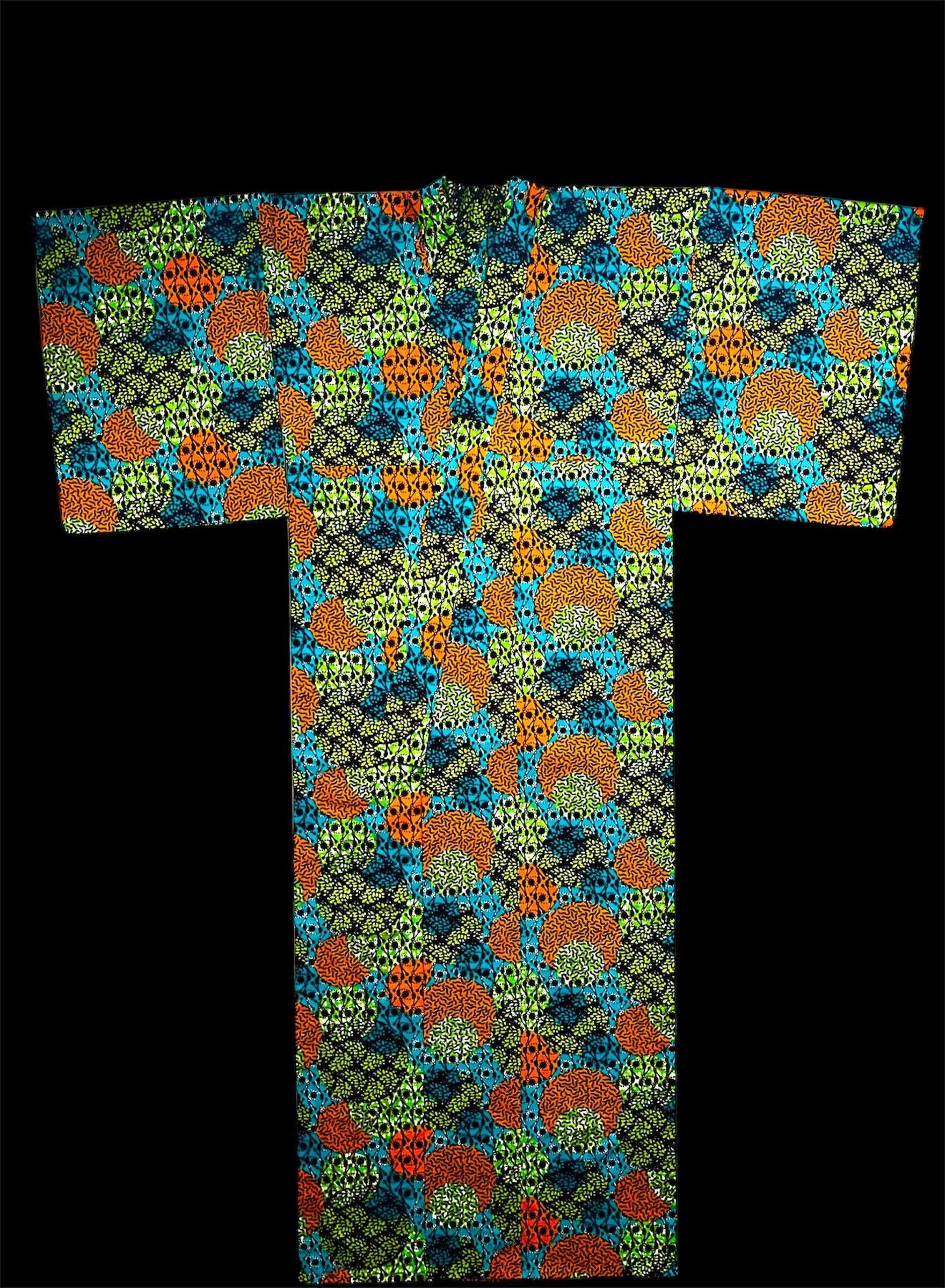 西アフリカ地域において広く流通しているアフリカプリント生地で仕立てたアクティブラインのアフリカ着物